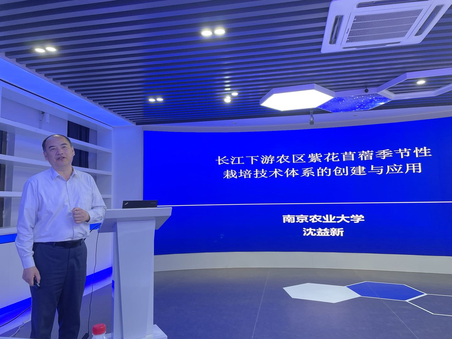 沈益新教授作了题为“长江下游农区紫花苜蓿季节性栽培技术体系的创建与应用”的学术报告。沈老师首先向大家介绍了长江中下游农区畜牧业的发展现状,以及对优质紫花苜蓿的迫切需求情况,但长江中下游农区夏季高温多雨,土壤板结酸化等环境非常不利于紫花苜蓿传统种植模式的推广。针对上述问题,沈老师系统介绍了团队十几年潜心研究的成果,发现秋季(9月底-10月上中旬)进行紫花苜蓿播种,来春季收获2-3茬的紫花苜蓿饲草的季节性栽培模式,能够克服不利环境因素的影响,且饲草产量和品质均较好。此外,团队经过多年实践,在紫花苜蓿品种选择、施肥、灌溉、刈割频度和高度等重要生产管理要素中进行了深入研究,最终探索出了适应于长江中下游农区的紫花苜蓿栽培新模式,目前已推广面积超6000亩,弥补了该地区紫花苜蓿种植管理技术的空白。最后,沈老师对bv伟德国际1946草业人才的培养寄予了厚望,鼓励伟德国际VICTOR1946本科生积极报考南京农业大学伟德国际VICTOR1946。