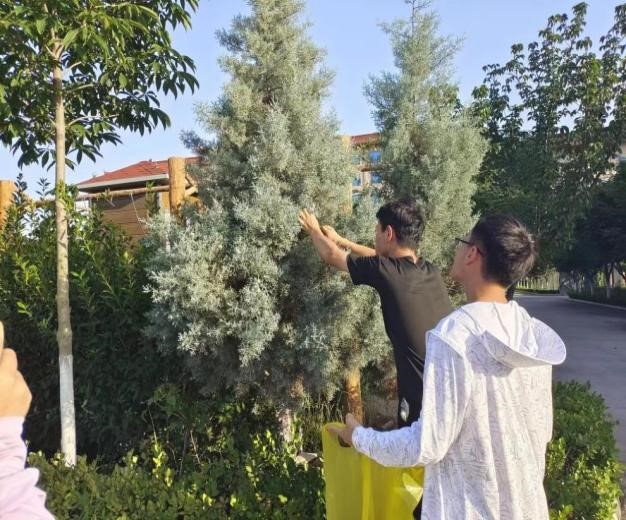 随后实践团成员们进入园区进行实地考察,通过参观植物景观,观察植物形态,认识了多种植物;在王海霞老师的讲解下,对园区内植物的特征、生活习性、病虫害的防治、杂草的利用进行了初步了解。最后,大家在园区内采集了植物标本,后续将进行蜡叶标本制作。
