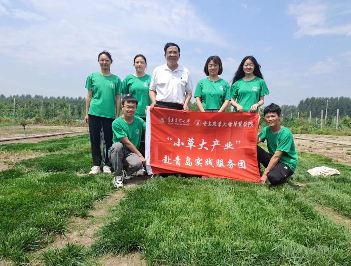 在胶州市现代农业科技服务中心草种质资源与育种基地,实践团成员们在傅金民老师的指导讲解下,全面了解了基地草种质种植现状和培育情况,学习了不同草种的生长习性以及草坪建植、剪草、施肥、除草、育种等基础知识。