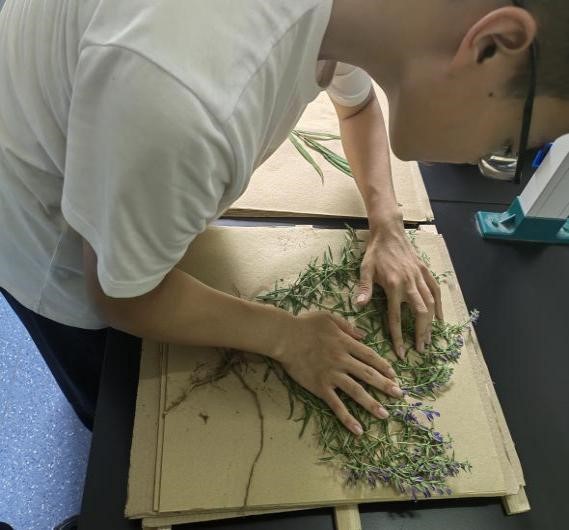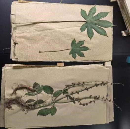 最后,实践团成员们在苗圃中采集多种中草药植物,进行标本压制,用于今后的教学与科研。