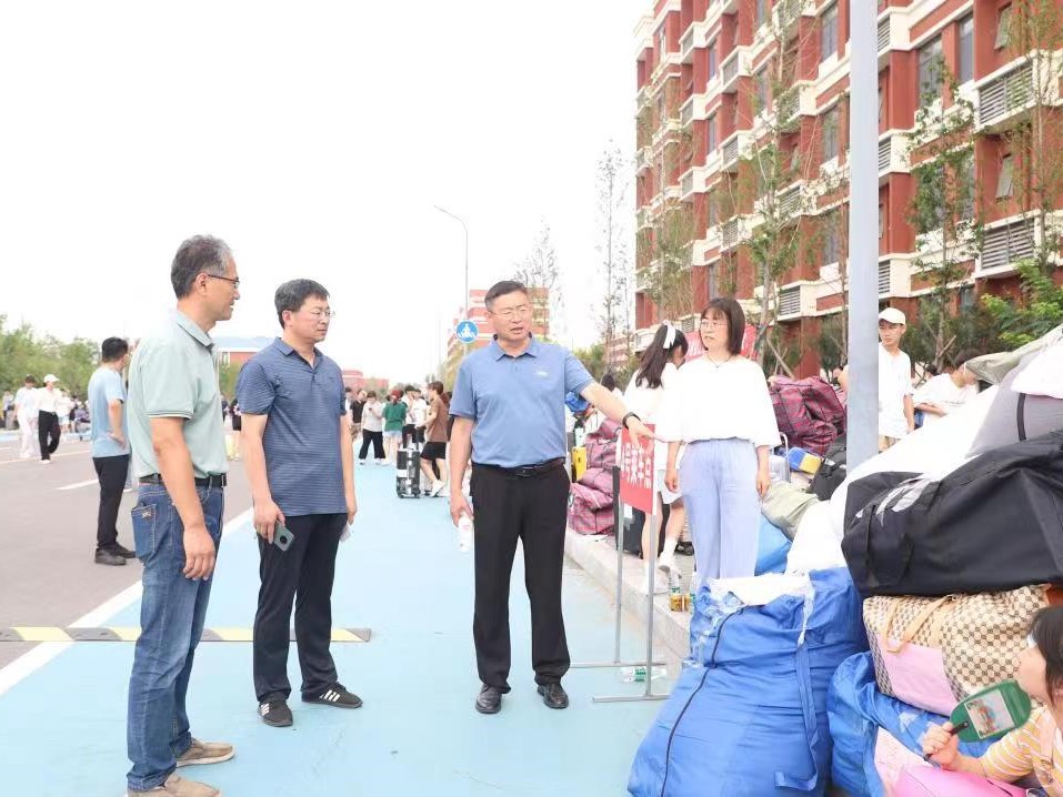 公司党总支书记乔磊、党总支副书记翟崑、辅导员刘凝现场指导搬迁工作,帮助同学们一起搬运行李并走访了宿舍。