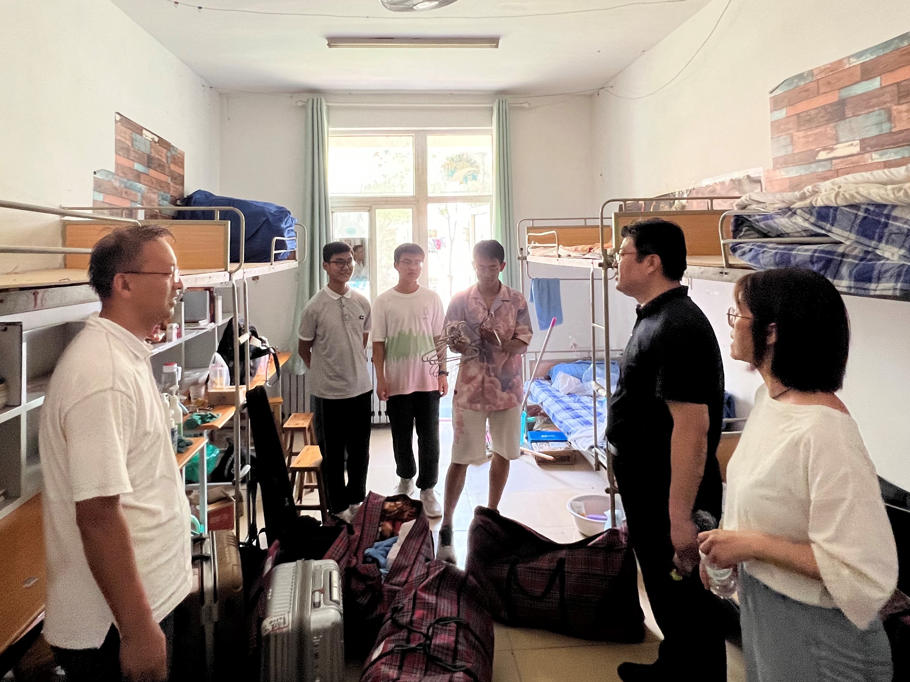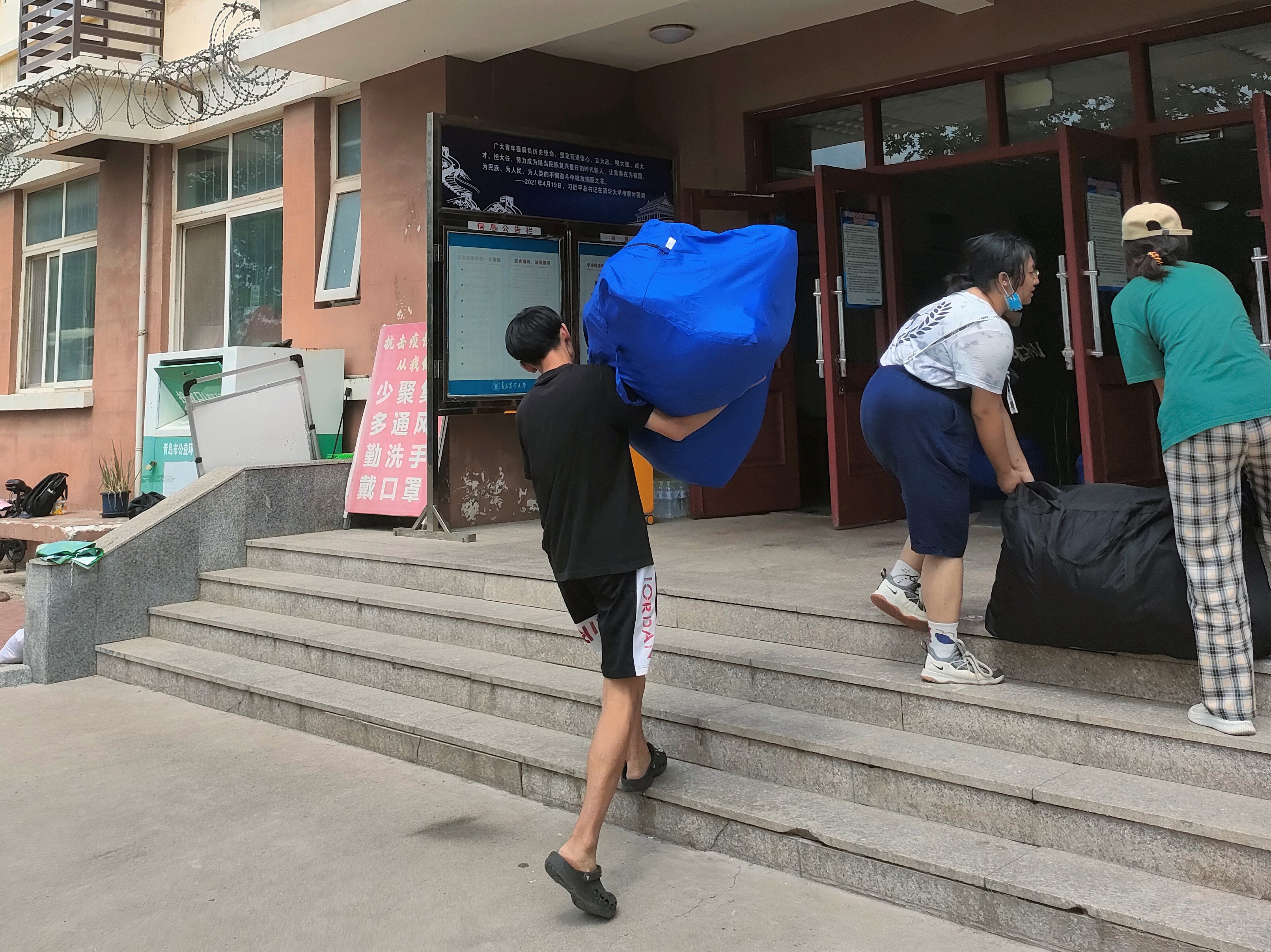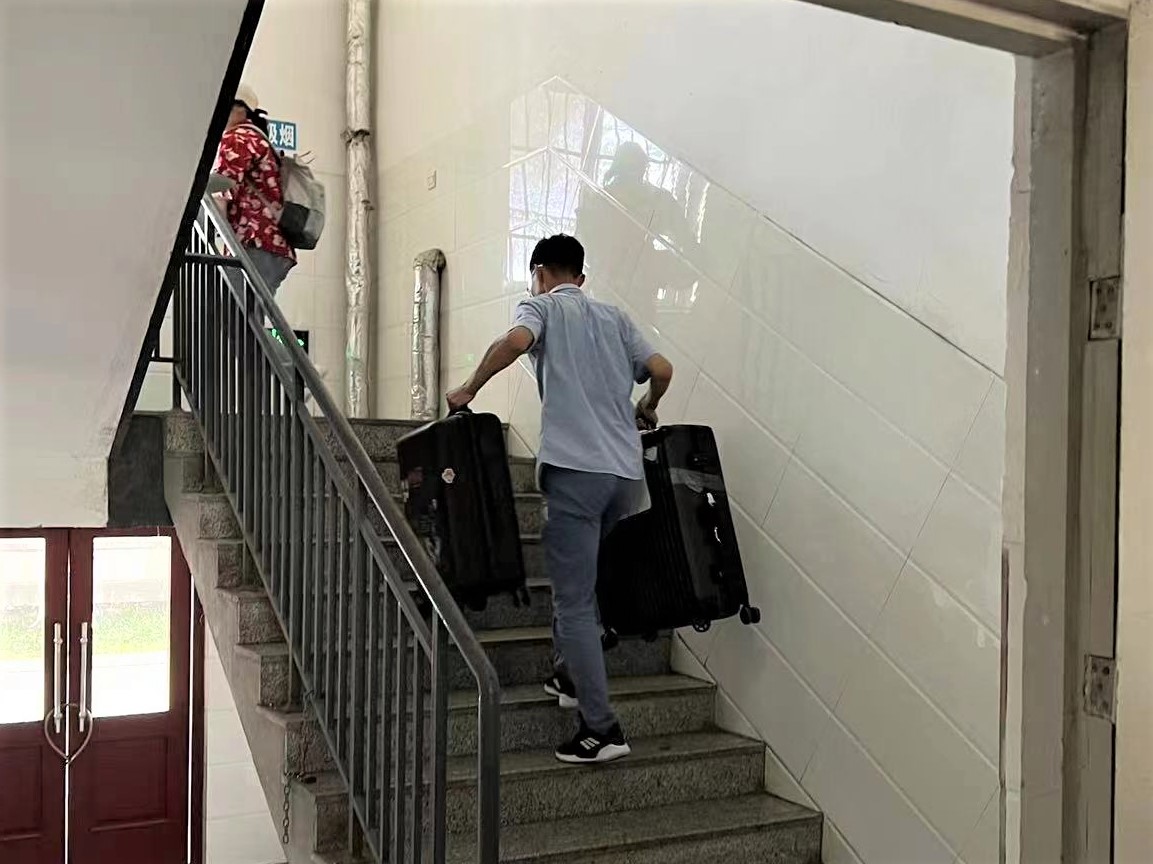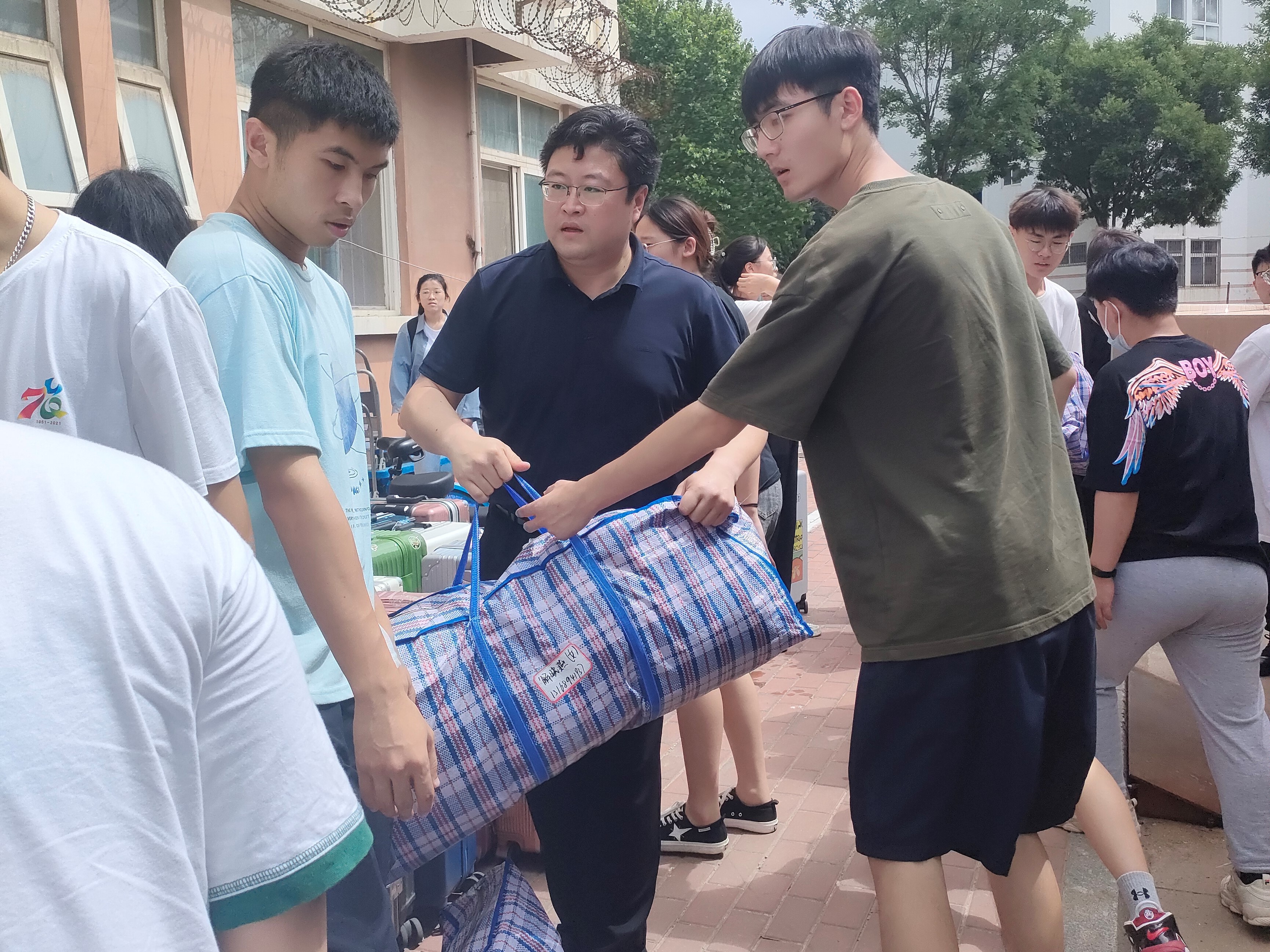 班主任、志愿者同学们齐上阵,帮助同学们搬运行李,留下的都是辛劳的背影,炎炎夏日,感谢有你。