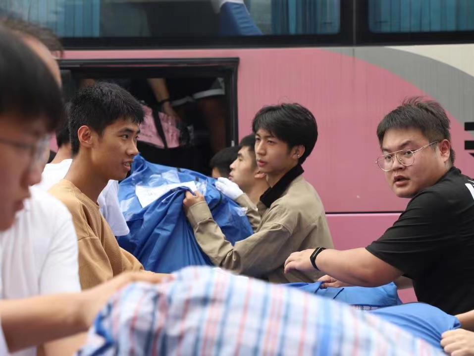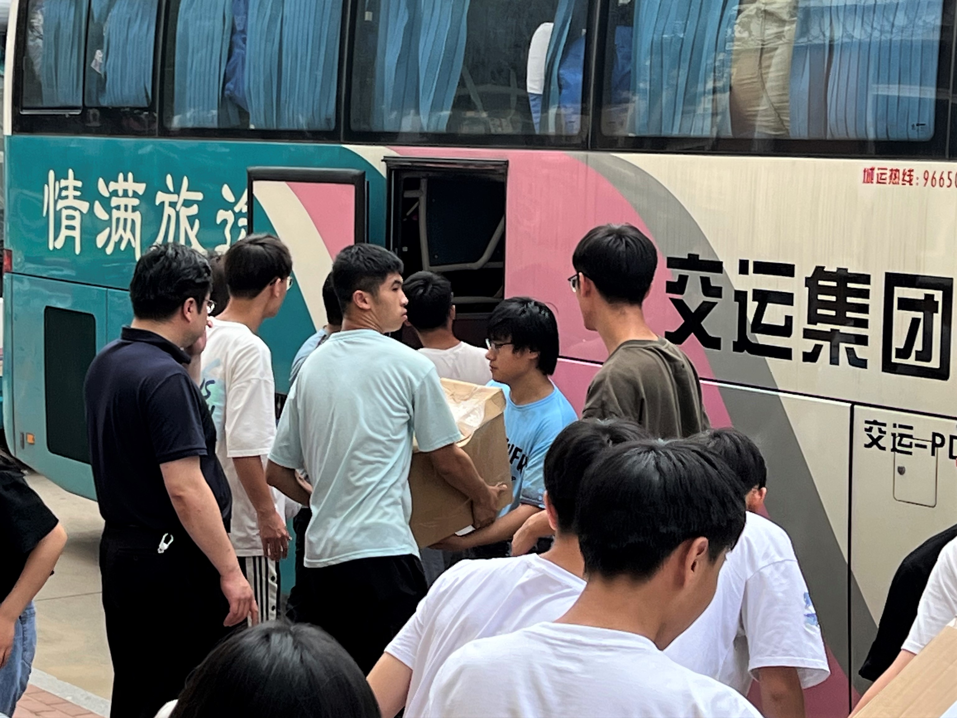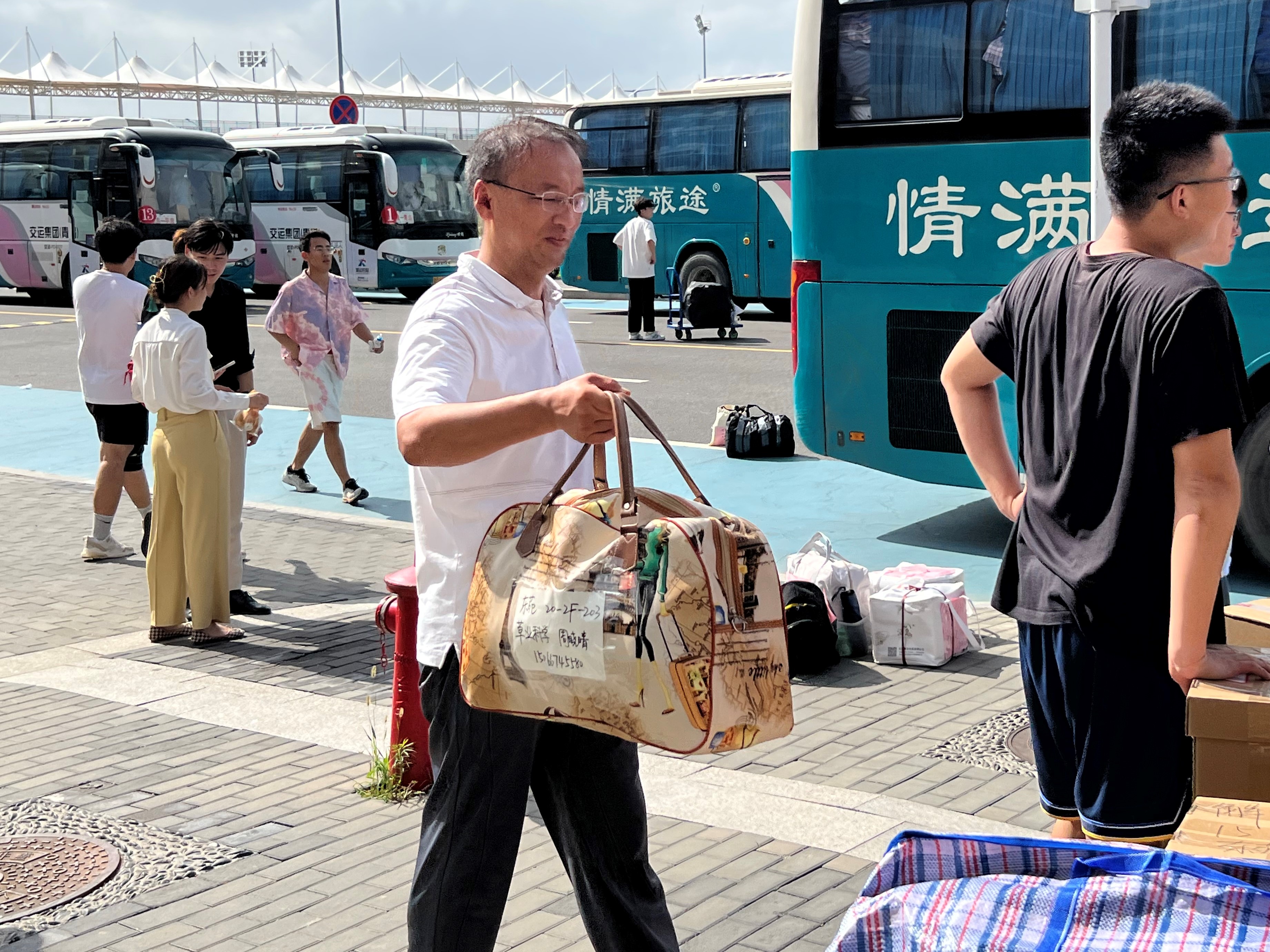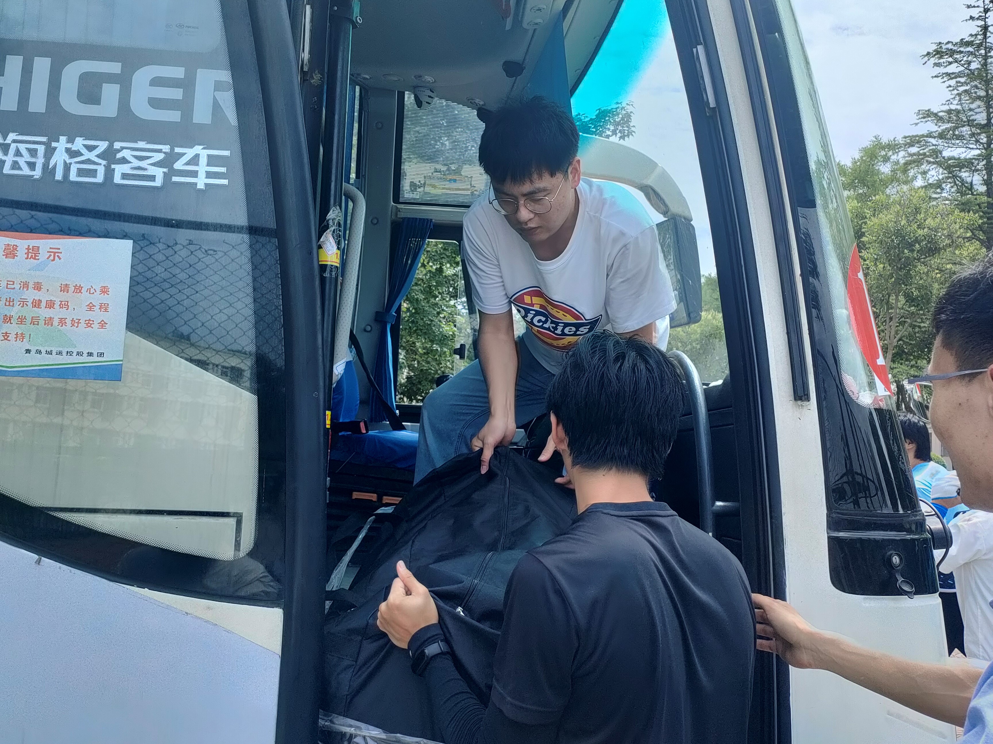 班主任、志愿者同学们齐上阵,帮助同学们搬运行李,留下的都是辛劳的背影,炎炎夏日,感谢有你。