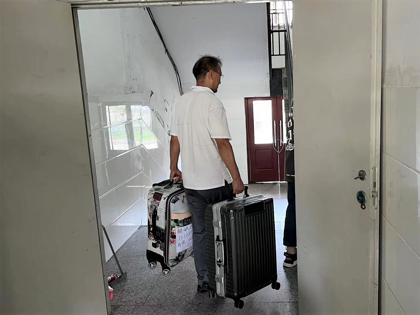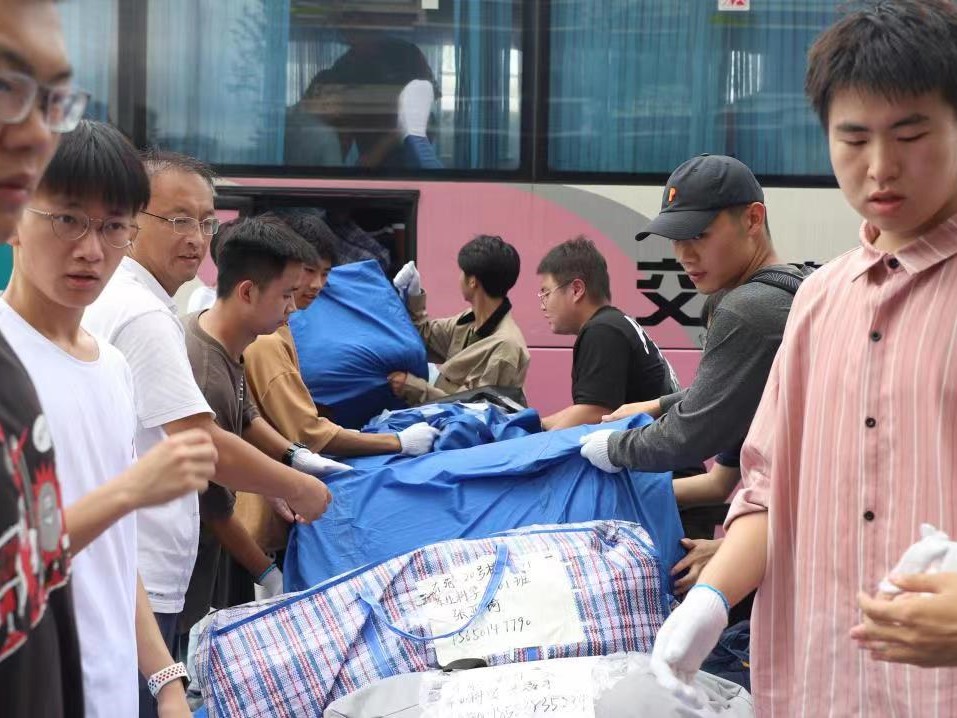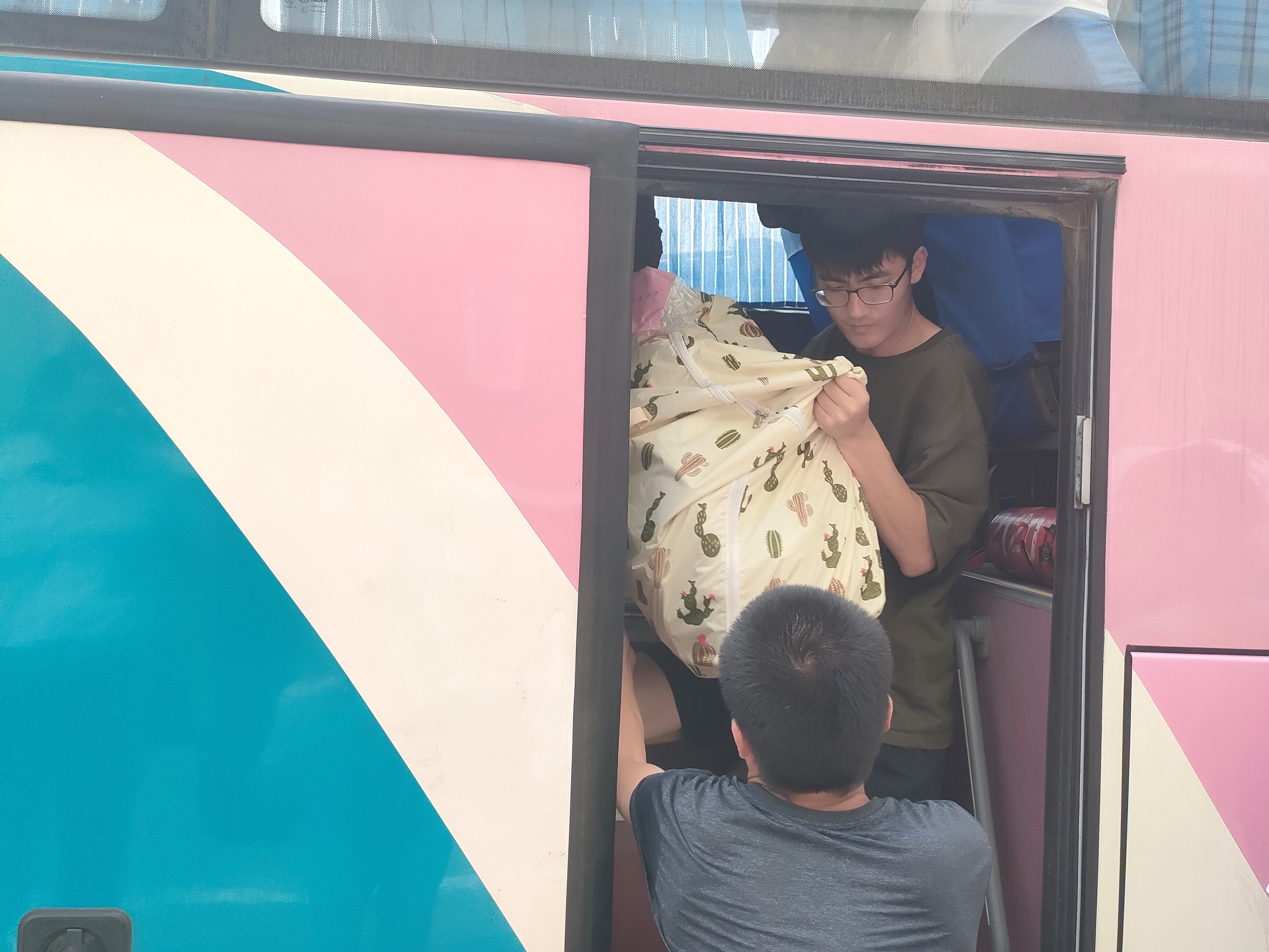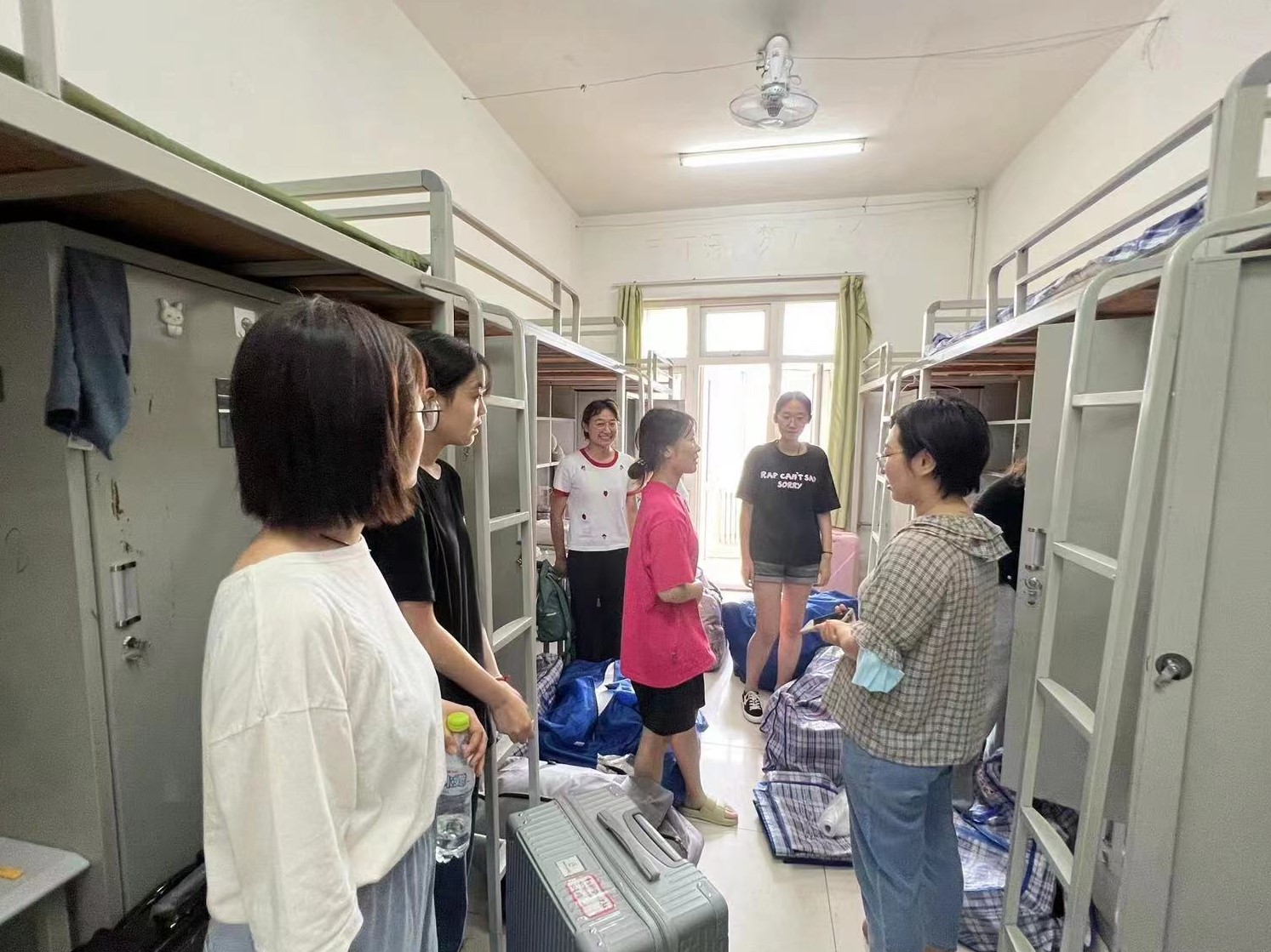 班主任、志愿者同学们齐上阵,帮助同学们搬运行李,留下的都是辛劳的背影,炎炎夏日,感谢有你。