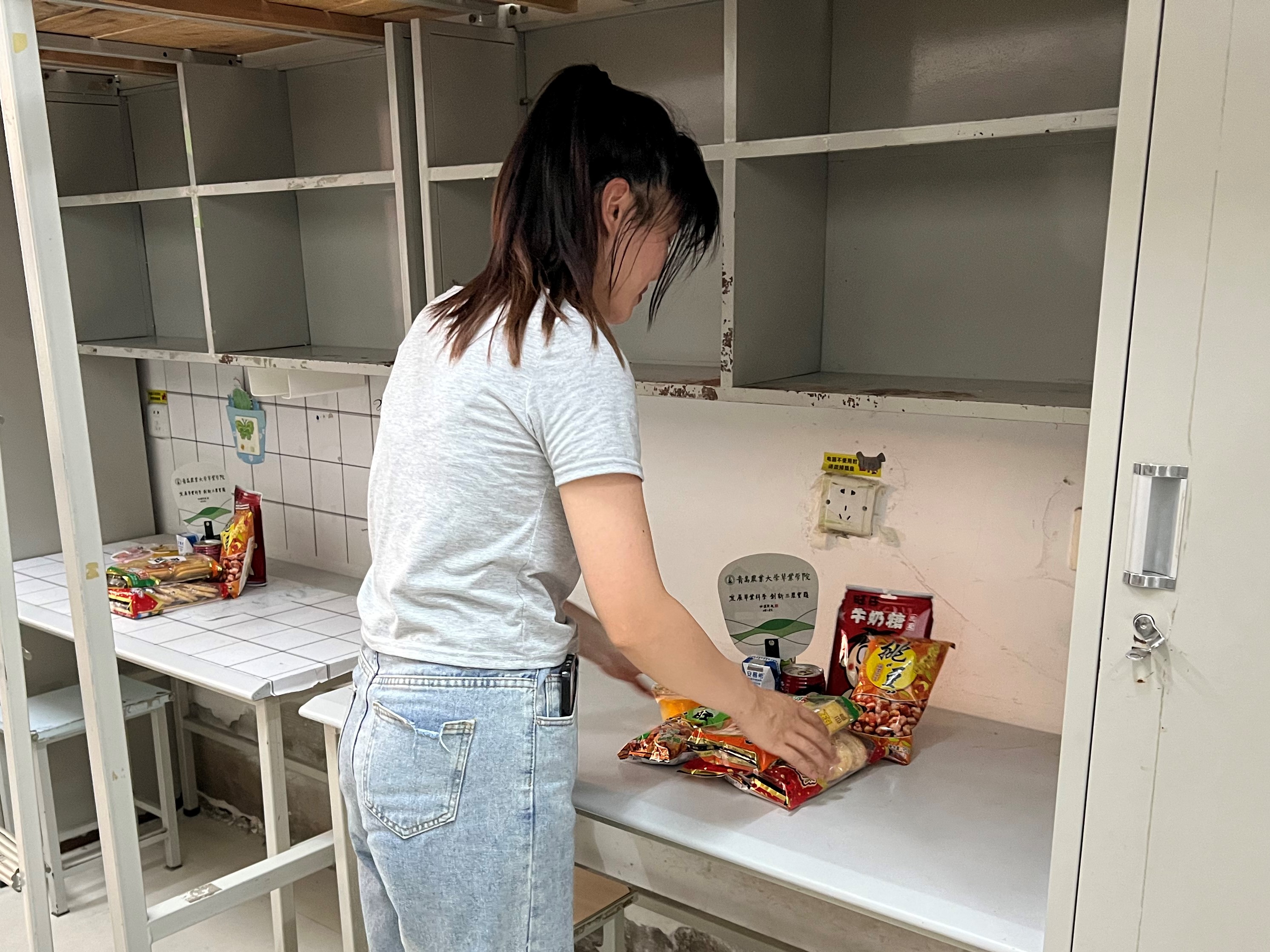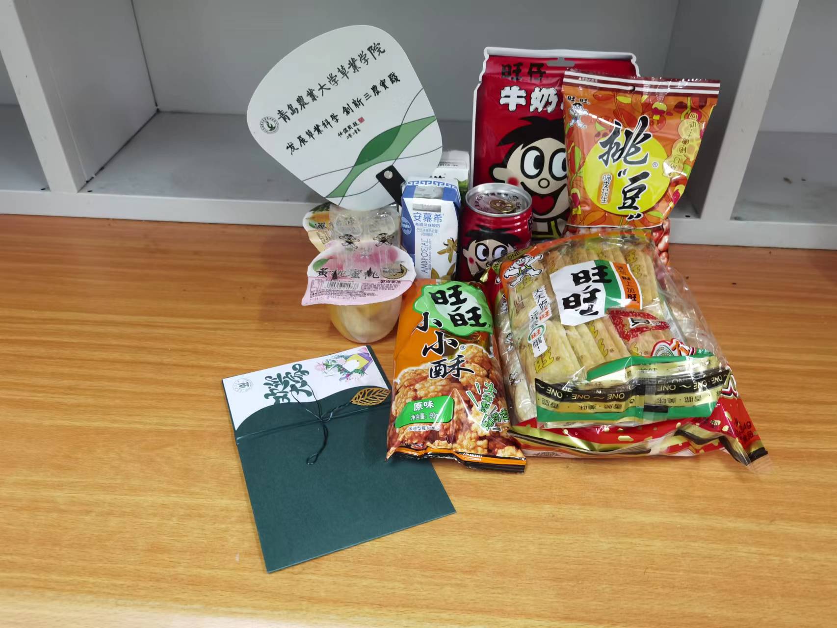 在2021级同学到来之前,辅导员老师刘凝和志愿者同学们将公司准备的“小惊喜”精心地摆放在桌子上,希望同学们在搬迁劳累之余能感受到一丝温暖,也祝愿同学们在城阳校区的生活“旺”上加“旺”。