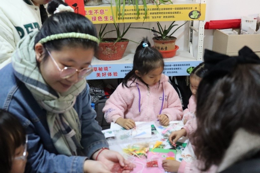 随后,绿之益社团的同学们带领大家一起制作手工植物书签,培养了小朋友们对植物的热爱,锻炼了他们的动手能力和观察能力,在朋辈间的交流与合作中,开拓了视野,收获了快乐。