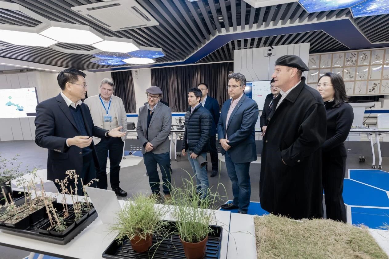 座谈结束后,乌拉圭代表团先后参观了公司牧草分子育种实验室、遗传与数字草地农业展示区、数字草业实验室,以及公司现代智能农机装备展厅。