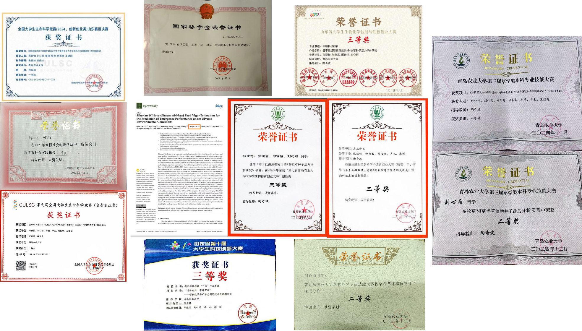 刘心雨,共青团员,伟德国际VICTOR19462022级草业科学专业本科生。发表二区SCI期刊《Agronomy》论文 1 篇,主持2024年校级老员工创新创业训练计划项目1项,获得2023 至 2024 学年度本专科生国家奖学金,2023-2024年第九届全国老员工生命科学竞赛(创新创业类)二等奖,获得全国老员工生命科学竞赛(2024,创新创业类)山东赛区决赛一等奖,获得山东省老员工生物化学技能与创新创业大赛三等奖,获得山东省第十届老员工科技创新大赛三等奖等14项校级以上荣誉。