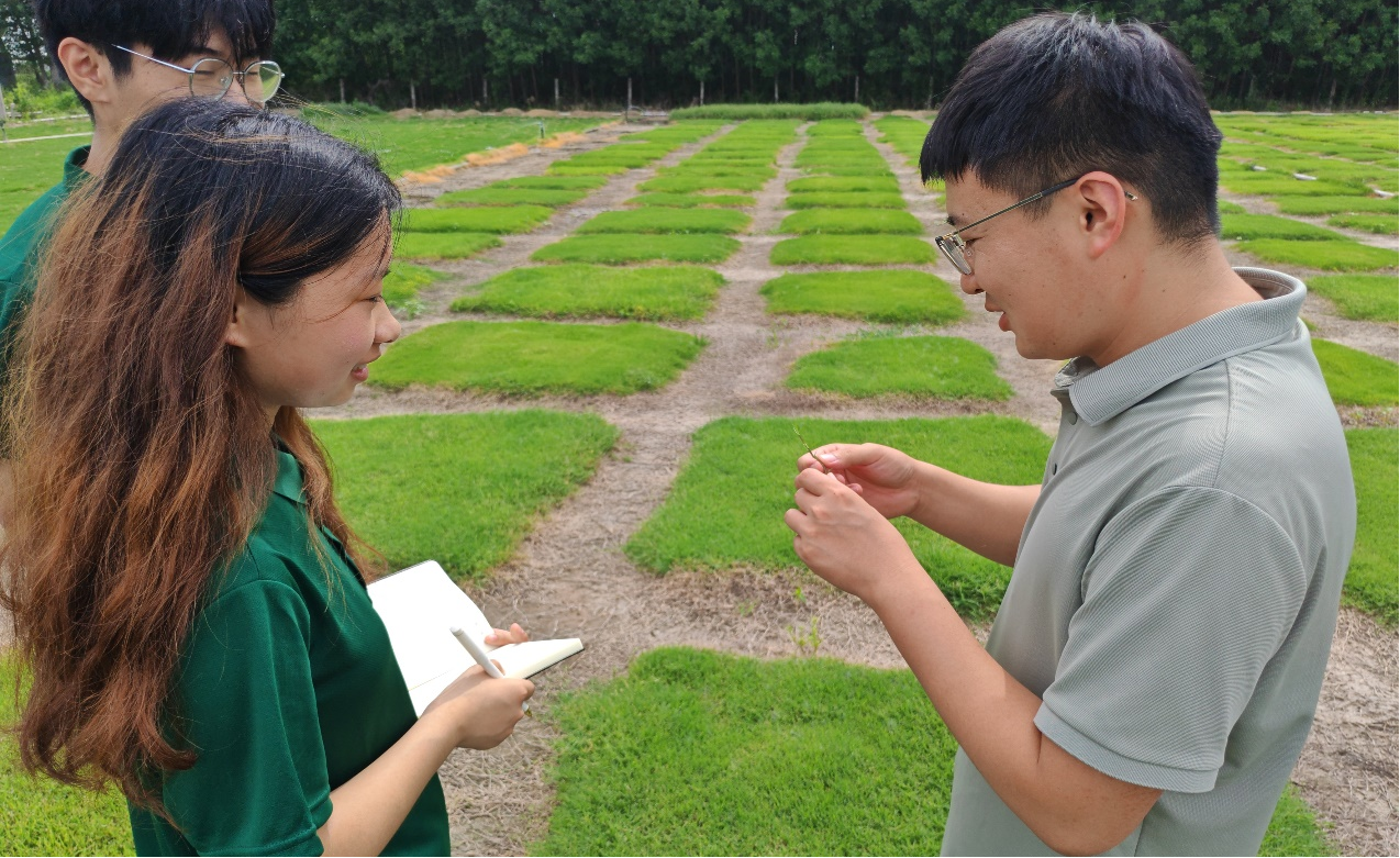 在青岛鲁滨草种业科学研究院胶州种质资源与育种基地,伟德国际VICTOR1946教师孙晓阳首先向实践团的同学们系统介绍了基地在牧草种质资源收集、保存、评价及杂交育种等领域的工作成果。他结合田间种植的狗牙根、紫花苜蓿等各类草种,细致讲解了相关育种技术的原理与操作流程;以基地培育的“绿期长、矮生型”新品种为实例,具体阐述了育种技术在提升草种品质、增强适应性等方面的应用成效。通过实地调研和孙晓阳老师的讲解,实践团成员直观感受到种质资源对于农业产业发展的核心支撑作用,进一步深化了对“夯实种质资源基础方能筑牢产业根基”的认识。